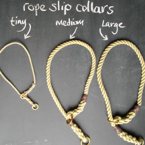 Lovely soft rope slip collars that are really strong. Spliced by Master Ropemakers and made in the good old UK, there are three sizes. Tiny is suitable for small terrier sized woofers, large is perfect for hefty labradors and even larger breeds and medium - well, for anything in between! Please note: this style of dog collar is designed for walking your dog on a lead and not for wearing all the time. Take it off after walkies.